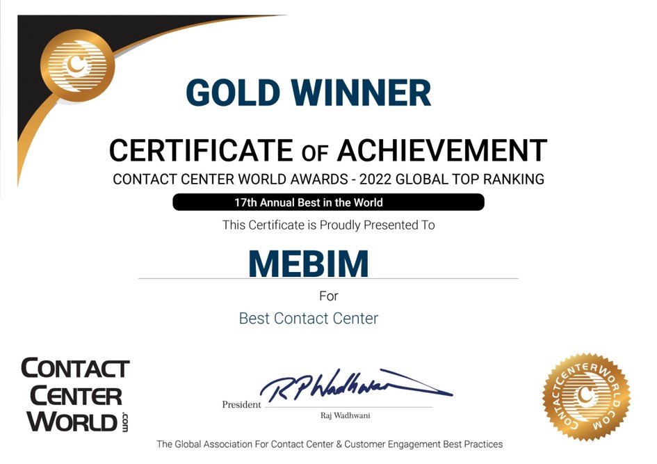 ALTIN MADALYA / EN İYİ İLETİŞİM MERKEZİ / DÜNYA İLETİŞİM MERKEZLERİ ÖDÜLLERİ