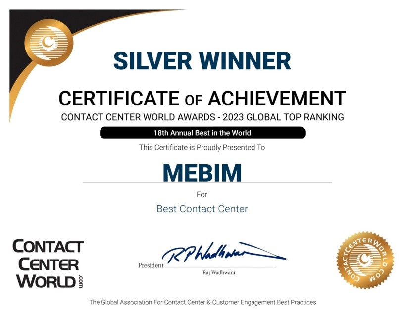 GÜMÜŞ MADALYA / EN İYİ İLETİŞİM MERKEZİ / DÜNYA İLETİŞİM MERKEZLERİ ÖDÜLLERİ