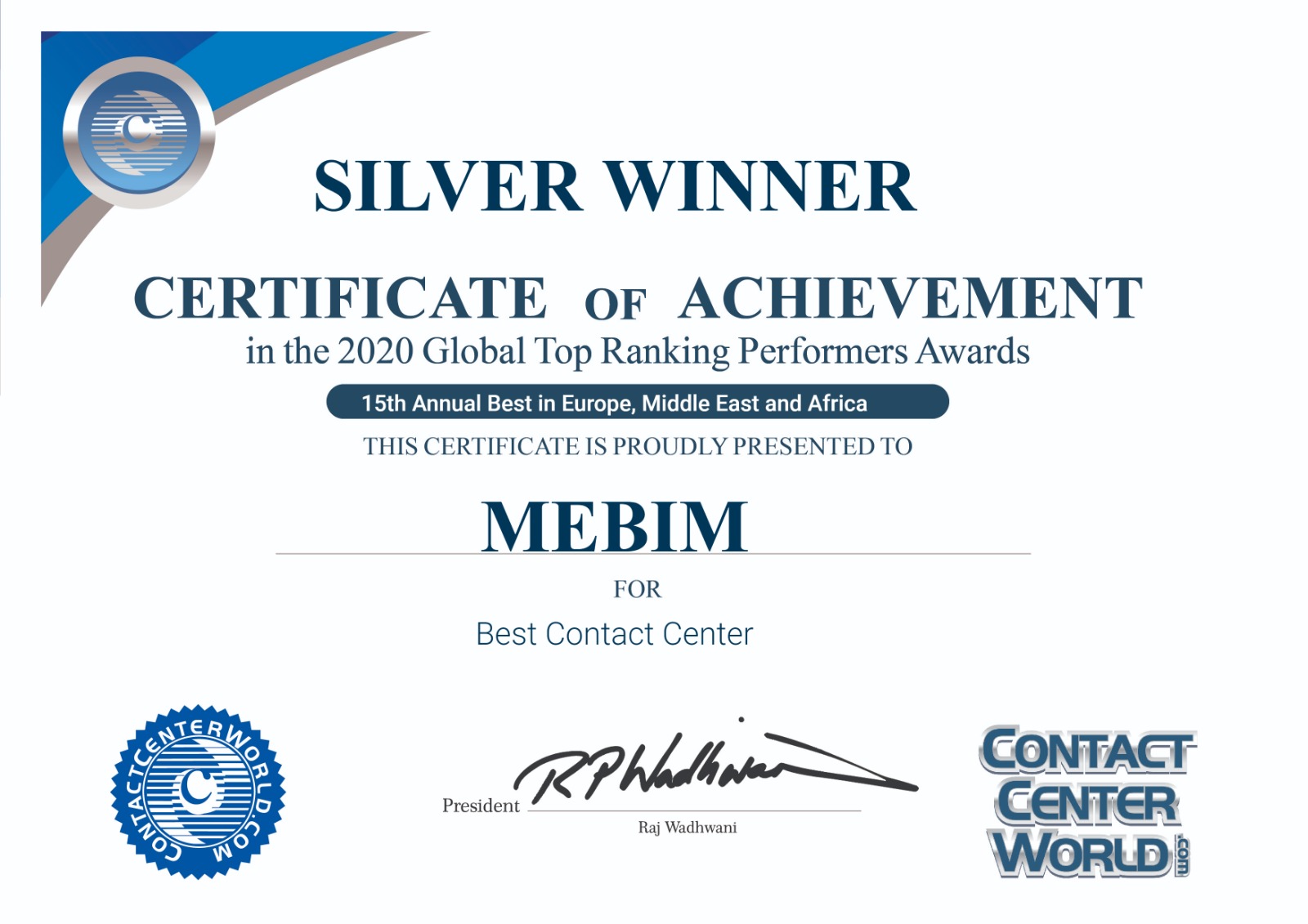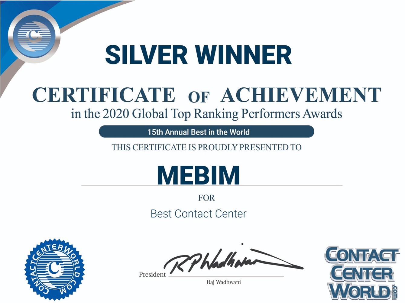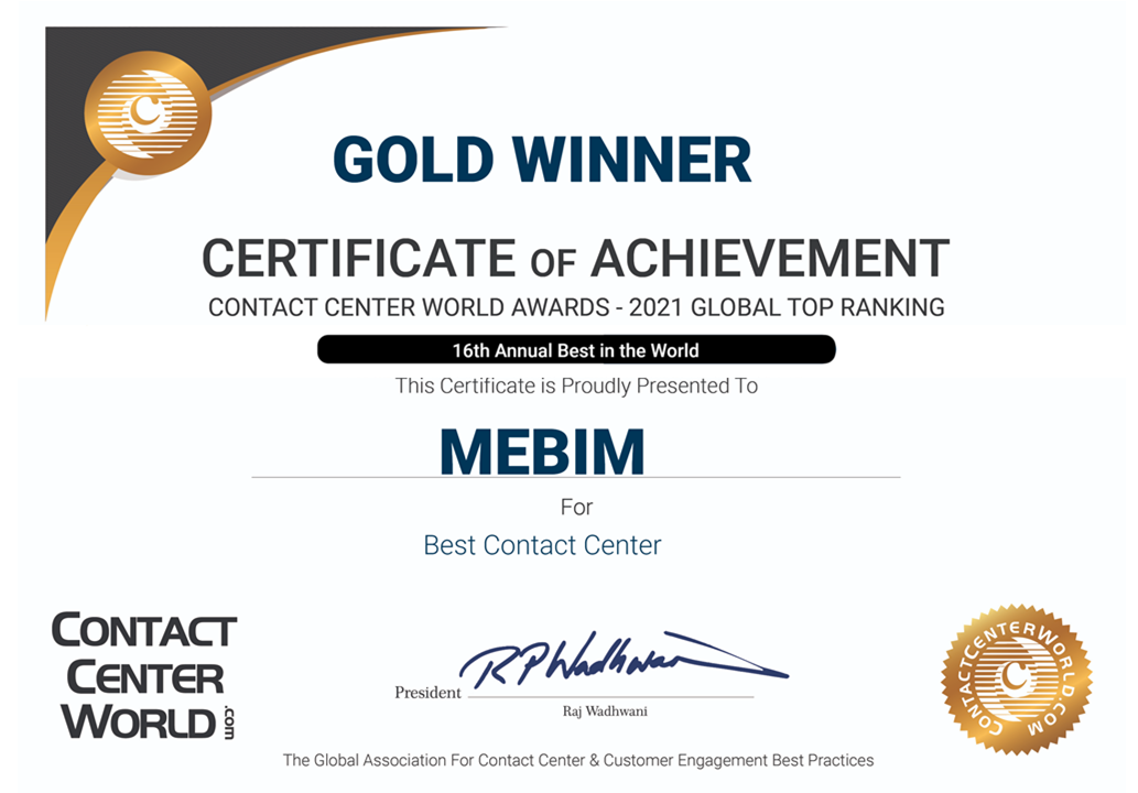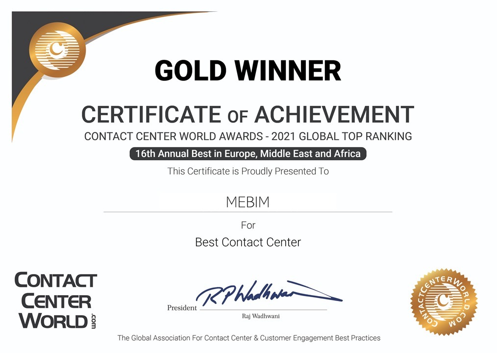 2021 DÜNYANIN EN İYİ ÇAĞRI MERKEZİ KATEGORİSİNDE ALTIN MADALYA MEBİM'İN OLDU